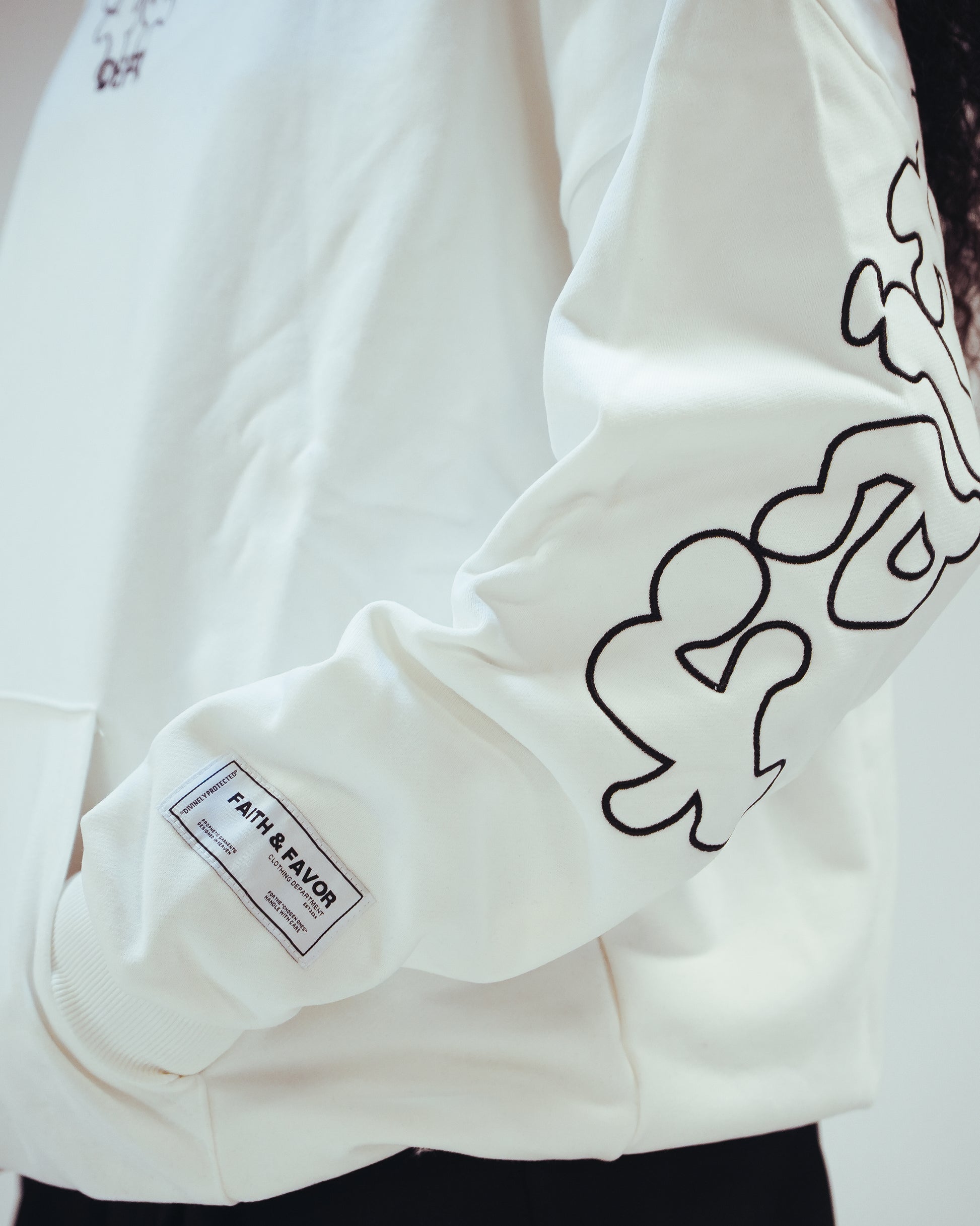 The white "GENESIS" Fleece Hoodie is embroidered with the outline of the covenant of "Faith and Favor" on the back of the hoodie. This 480gsm garment is made up of 80% cotton and 20% and features the "Faith & Favor Department" logo embroidered on front-center. Each hoodie has been sealed with our 'DIVINELY PROTECTED' patch by the cuff.